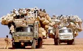 with you: I can remember things like this truck in places like India or the steam trains in India with people hanging all over them around 1985 and 1986. Can you imagine traveling across a desert in over 100 degrees Fahrenheit like this?