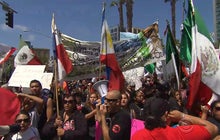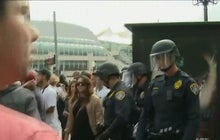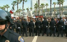 CBS News correspondent Carter Evans reports hundreds of protesters marched in the street near San Diego's convention center.