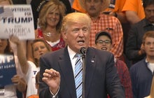 "We're going to build a wall," Trump said to his supporters inside.