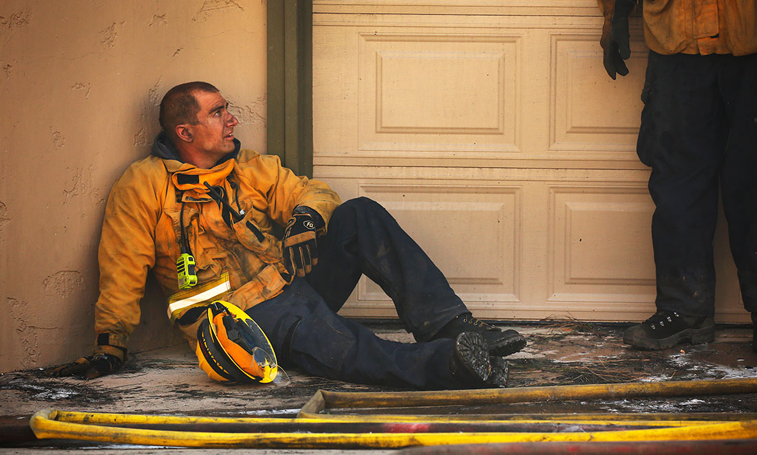 breath after fighting to save homes on Tuesday, December 5. "We chased