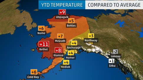 - Temperatures have been 5 to 15 degrees above average in Alaska.