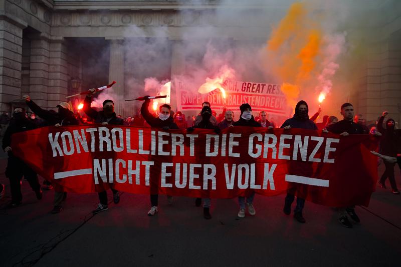 Among those protesting were members of far-right and extreme-right parties and groups, including the far-right Freedom Party, the anti-vaccine MFG party and the extreme-right Identitarians.