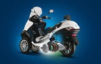 A pair of hybrids represents the latest evolutionary step. The original MP3 Hybrid, powered by a 15-horsepower, fuel-injected, 124cc four-stroke Single mated to a high-torque electric motor, was a flop because, despite substantially invigorated low-end response, overall performance remained tame.