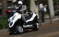 Whereas many scooters are high on Flash Gordon styling but poorly engineered, the MP3 is light years ahead, especially in active safety and ease of use by non-experienced riders. On a wet road, no two-wheeled vehicle can match the surefooted-ness of an MP3.