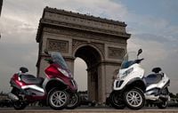 Piaggio’s three-wheeled scooter, the MP3, is apparently conquering the hearts and minds of motorists at a slower rate than hoped. This is surprising, given the objective merits of this unique vehicle and, specifically, its novel front end, which features two wheels that steer and tilt.