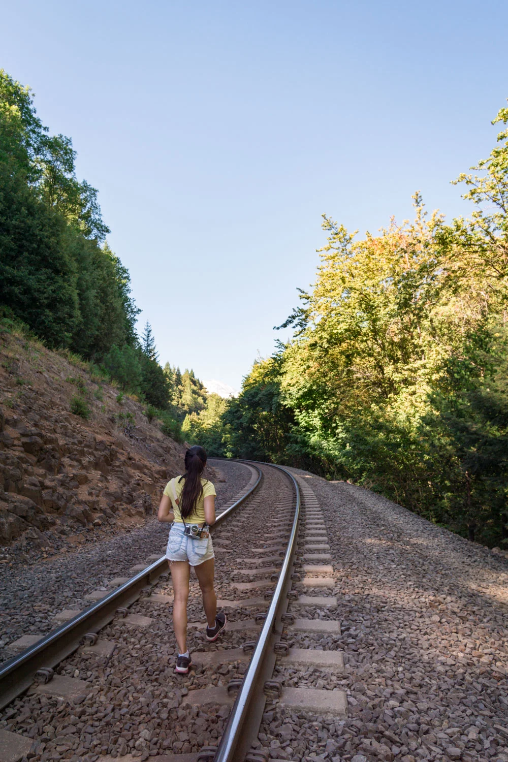 The entire time you are walking on loose rock, and there is no shade if you hike in the middle of the day. The right side of the tracks had a lot more room to walk, and we constantly checked for trains coming in both directions.