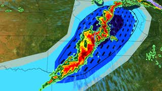 A line of strong to severe storms is pressing eastward through the mid-Mississippi Valley and Ohio Valley. This line is expected to slow down overnight as it bumps into a dome of record heat located in the Southeast. Days of heavy rain and severe weather are likely in the mid-South and parts of the South and East as the pattern change locks into place.