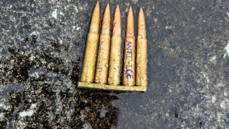bbegainBullets on the ground with "Anti-ICE" written on one.
