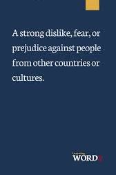 - dislike of or prejudice against people from other countries."the resurgence of racism and xenophobia"Similar:prejudiceintolerancebigotryinsularityparochialism