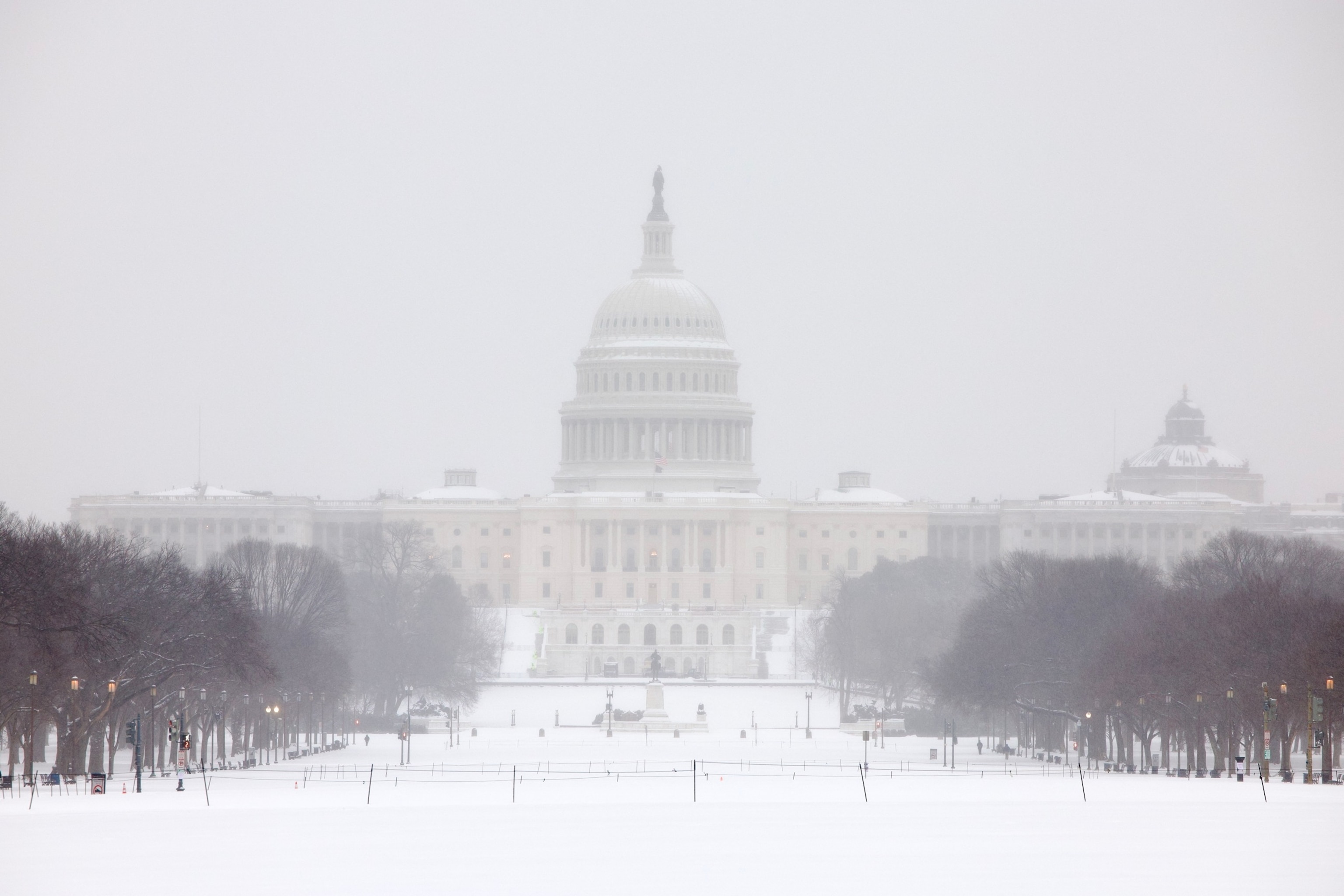Heavy sleet is falling in Washington, D.C., and most of Virginia.